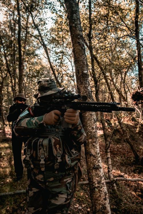 I recently got a Mimtech spring/summer reversable ghillie. I've actually had it a few weeks now, but it's still in the process of being fully crafted. Hopefully I can get some good pics this weekend. Since my last summer ghillie, as much as I love it, was falling apart, I decided to spend some cash on a decent base suit. The mimtech ghillies have popped up on skirmshop recently, and after seeing some videos and a friend buying one, I decided to pick it up myself. I'm not quite as enthused about the reversibility as I was a month ago, as it means you can't build up the crafting to be at all bulky if you want to actually switch the sides on it. On the other hand, the 2D base colours are so good that it really doesn't need heavy crafting, and it's helped me think about the efficiency of my added crafting material, instead on just throwing more on the pile. I got the L/XL sized one, I'm 5'9" and on the portly side, it's not too long, and roomy even with kit underneath. It's a really well made mesh base, with some well thought out features on the suit, such as clips to hold the front up to allow chest rig access, a decent length cape/back while not being long enough to get stepped on, as well as clips on the hood to attach to a boonie or other hat. The hood is HUGE which helps with breaking up the head shape on its own, as well as acting like a hide net to make you even more unrecognisable, even last game day when I was sat in front of a tree when both teams could see each other on spawn, and it still took a few minutes for anyone to even spot me. The sleeves have partial hand covers and bands to hold the min place, which is perfect for stopping your sleeves rolling up by themselves. Though I'm a L/XL glove kinda guy, and I find the bands a bit tight. I've resorted to only putting it around three fingers, which seems to work well. The trousers have some good stuff, like zips to access lower pockets, zips to help you get your boots in easily. However their quick adjust elastic band is pretty awful at actually keeping the trousers in place. At least it's easy to zip tie a pair of suspenders into place to hold them up. Overall I'm pretty happy, while it's about £250 for the whole base, you potentially get two suits in one. I shouldn't have to change my actual suit all year, just adjust which side I'm using depending on conditions. The below pics are lightly crafted, what I was running in game two weeks ago. The brown side is in use at the moment and it was definitely effective at range. It should be even better this weekend with some time put into it. (I'm not wearing the suit, but it shows how effective it ca be with light crafting)1 point -