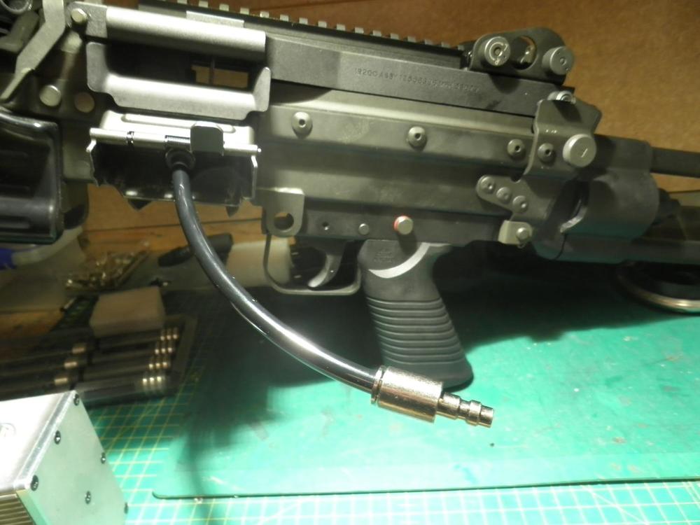Thought I'd experiment a bit with the gas feed from the box mag to see if I can make something totally secure and non invasive. Picked up the Airtac hpa kit, now I would only hpa it if I can get a bottle in the box mag and I wouldn't use the mag adapter which allows you to run an aeg box mag. The limited ammo and mag changes are part of the GBB experience for me. Very much at the proof of concept stage, but I've fitted the hpa adapter to the gun, just replaces the brass fitting in the mag well , and run part of the line that comes in the kit. On the mag I've used an hpa line I had knocking about which I cut in half , the rubber tobe pushes straight in to the fitting on the mag tank. I now have a QD fitting with a stop valve. The tank is holding gas fine. A quick test looks promising. The gun cycles fine, and that's with only a short fill and it's bloody cold in the garage . I'll do some testing at weekend and shorten the lines , may use the spare rubber section for the line in the gun as it's more flexible, so easier to route into the box mag. I wont be able to run it from the STANAG, but tbh I dont see that as an issue. If this works, it's totally reversable in about 15 minutes. I'll keep you all posted1 point