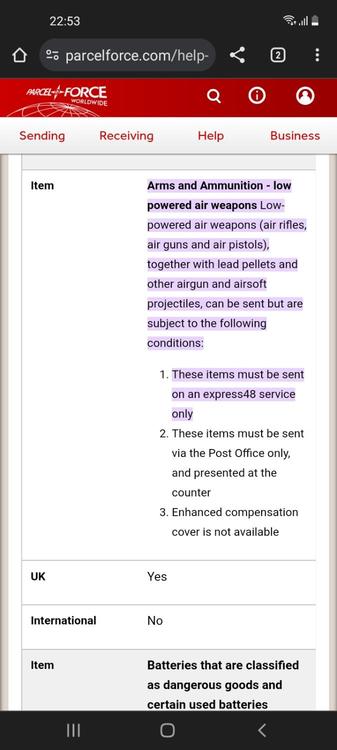 They will insure RIFs/Package items to their minimum insurance level for PF48 which IIRC is £150, any additional/enhanced insurance is null and void in the shipping of RIFs with them. Last time I read through their T&Cs they will only ship "Low Powered Air Weapons" using their PF48 service, so not sure how they'll respond to the use of PF24 etc for shipping. Below image from their T&Cs.1 point