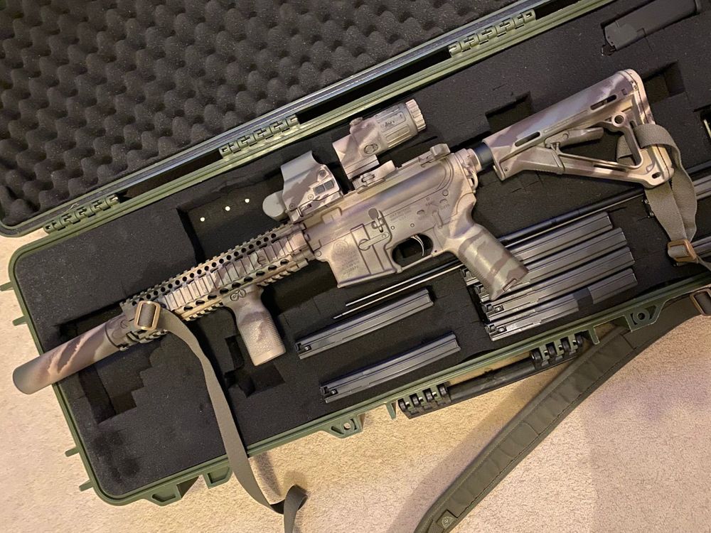 I think my MWS MK18 build is finally complete. internals sixG brass nub modify tan bucking prometheus 370mm 6.03 inner barrel PTS mec buffer with spacers DynamicPrecision nozzle spring set T8 gas routers (magazines) external Magpul pistol grip Magpul foregrip Magpul CTR stock Clone surefire socom suppressor Clobe eotech optics (evolution gear) pherro concepts sling Krylon rattle cans - olive drab, sand, brown1 point