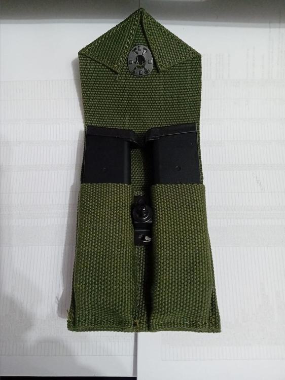 Thought I'd wear my Alice webbing when using the XM177, bought a pouch which holds 4X20 rnd mags, a leather holster for a 1911 (to stay period) & a double mag pouch to match it. Unfortunately the only period 1911 I currently have is a replica so will use a Raven MEU 1911 instead, bloody pouch is too small for the mags so after a little fettling to the pouch catch they now fit. I'll rivet or bolt the catch in it's new position when I have time to rake about my shed to find the bits I need.1 point -