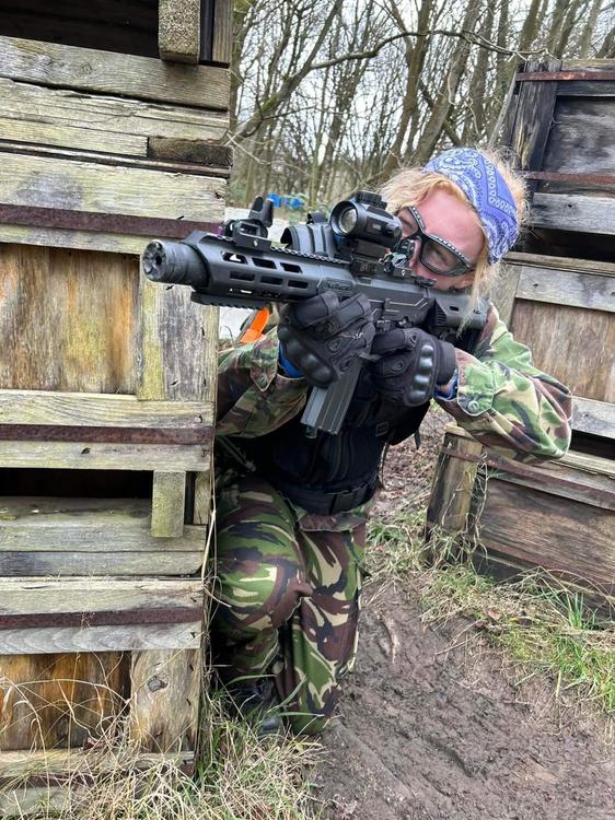 Played another half day today and actually managed nearly all of it! There was only12 of us with 4 or 5 first timers but it was a really good day. They first timers were all young teenagers so it took them the 1st game to realise that it doesn't hurt when you get shot. Standard attack/defend games were played and by the time I had had enough there were some very good tactical manoeuvres emerging with fantastic comms being shouted. Pics below . . . That's my eldest daughter. Another proud father moment.4 points
