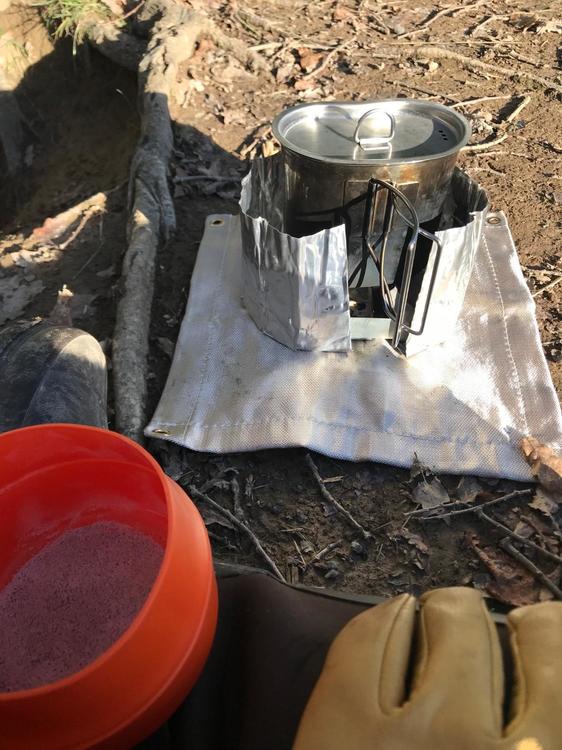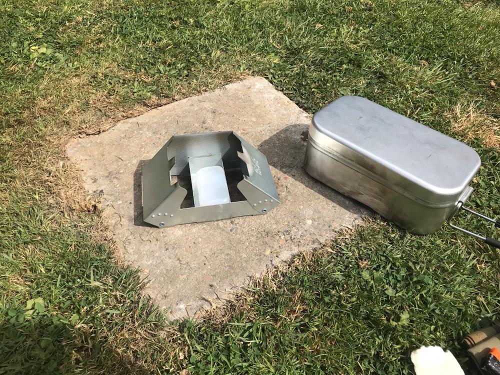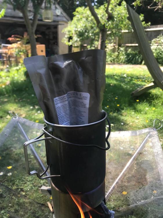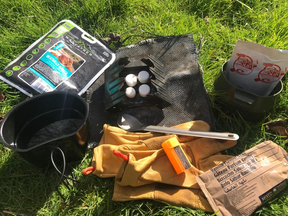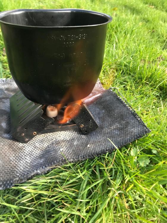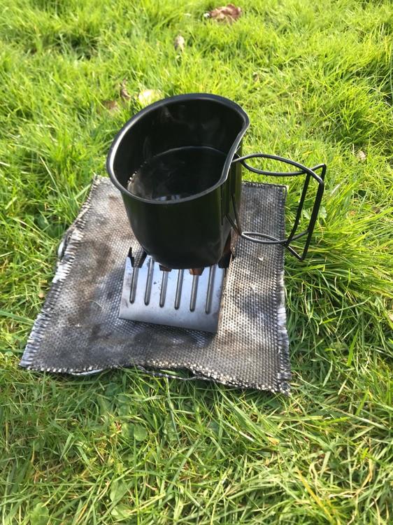 For cheapness option 2. The very robust solid fuel “Tommy” cooker style stove and cup. The hardware in this is £20-30 including enough fuel for half a dozen brews. • BCB Metal Crusader mug. • Highlander army stove. • Fuel tabs. • Windproof matches. • Soldering mat to protect the grass • Long spoon, for eating directly from food packets. • Plastic fold-a-cup. Nicer to drink from and you can make a brew/soup in this while still cooking in the metal cup. • Gloves. The metal mug handles get very very hot when the fuel initially flares up. This set up is very simple and very robust. Even if you some how broke the stove you could still run it. Alternatively just use 3-4 big nails jammed in the ground or rocks as a stove. The old issue stoves with a holder for the Crusader mug are a bit more stable. Heximine and Esbit are a bit toxic and leave a residue on the outside of your pot. Rubbing them in the soil or sand is enough to get this off. If you are using alcohol based fuel blocks or gel, then a bit of foil folded to make a tray or stove specific works better. The fire dragon stoves are also cheap. The fuel is a bit pricier than hexi, but legal for sale! Supposedly non-toxic and less odour. As it’s alcohol based the flame is clearer so it’s difficult to see it’s lit in daylight. It leaves less sticky residue on your pot, just soot. The stove tray will get a crust in it, but this doesn’t effect function. Extra kit may be a: • pot scourer or tissues to clean up. • Pot/mug lid, metal ones are best or tin foil. Retains some heat and keeps out bugs. • Heavy foil wind shield. But this is then an extra faff to set up. These types of stoves are usually cool to the touch by the time you have had your brew. As a side note round pots are a bit more fuel efficient and boil quicker due to better heat distribution, or something. So if you don’t need a metal mug to stack with an issue canteen they are a good alternative. They can be a little less convenient for boil in the bag though. There is no issue with using aluminium cook ware, steel is obviously very strong. Titanium is lightest but most expensive and if actually cooking can burn things more easily. However my focus for this cheap. ?1 point -
