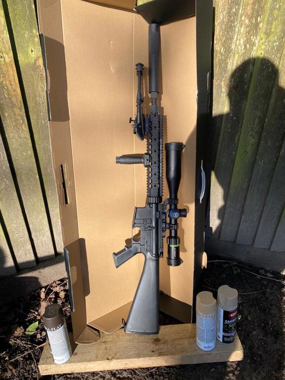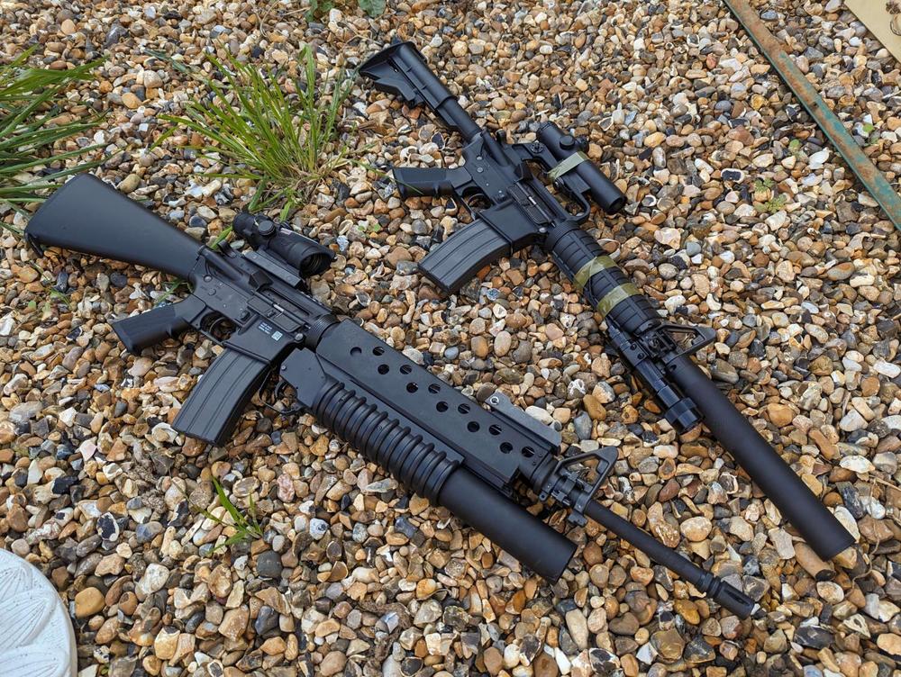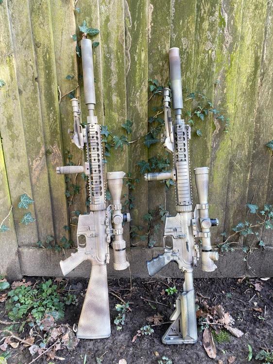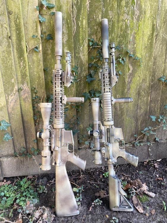 Setting hops on these WE GBBR this morning , the mk12 has surpassed expectations , semi auto locked & 350fps on .32 it’s shooting very nicely indeed changed the lower over on the mk18 for a trade marked version so gave that a good run and it’s equally ticking my boxes . M4a1 / m203 upper for S&G1 point -