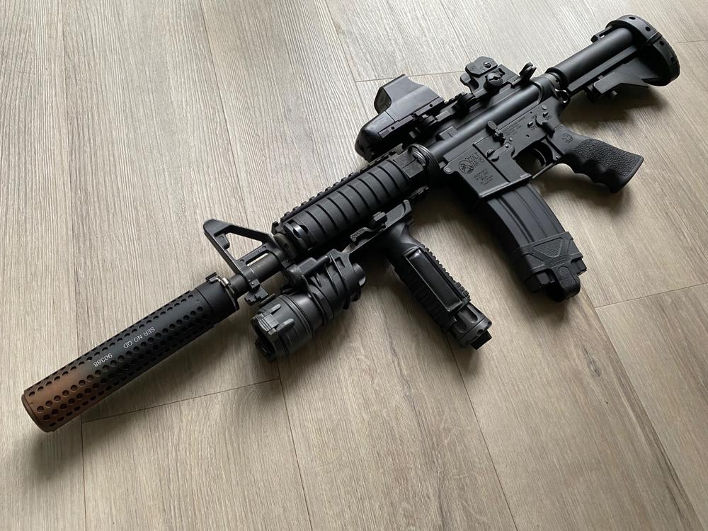 Work in progress, BRT CAR15-SD 300 blk replica. This gun encompasses all the best bits of various guns imo; Its a sub-gun / PDW - my fave size. MP5SD vibes - just love MP5s. Retractable stock - again MP5. AR controls - ergonomics. 20rd mags - easy to shoot when prone. 300 subsonics - cool as F in real steel.1 point