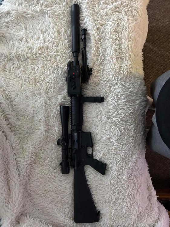 Not posted in a while and not great with pics ? GHK Mk12 Mod1 Forged Edition, kitted out to look like the Line Survivor build used by Marcus Lattrell. Hogue Grip M3 Scope Replica KAC rail covers KAC Style Vert grip Somogear PEQ2a VFC KAC Style Bipod Mount Harris 9-13” bipod Zparts Muzzle break with Zparts Suppressor Nearest clone ARMS scope rings I could find1 point