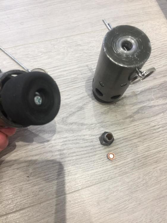 A while ago at a airsoft site near me,I found 2 used 6 bang training device grenades probably from some police or military training, my original plan was to keep them as paper weights as they are inert, my thoughts then went to, how easy it would be to make them useful again and looking at the mechanism I fiddled on with re drilling the old primer and fuse out and tried a new primer and what was basically useless. I then looked at my bfg (dynatex dominator) to understand how it worked and then the plan changed. To make them into a blank firing grenade, I drew a mock up for a bolt/ firing pin with basically a ball on the end for the impact part. I went to my local hardware store for some bits and cost £4.50, got to work assembling and drilling a whole for the safety pin to go all the way through so the firing pin can not touch the 209 primer even when dropped, firing only occurs when safety is pulled out and grenade is thrown to the ground where it’s hits the rubbed door stop connected to the firing pin and thus detonating.3 points -