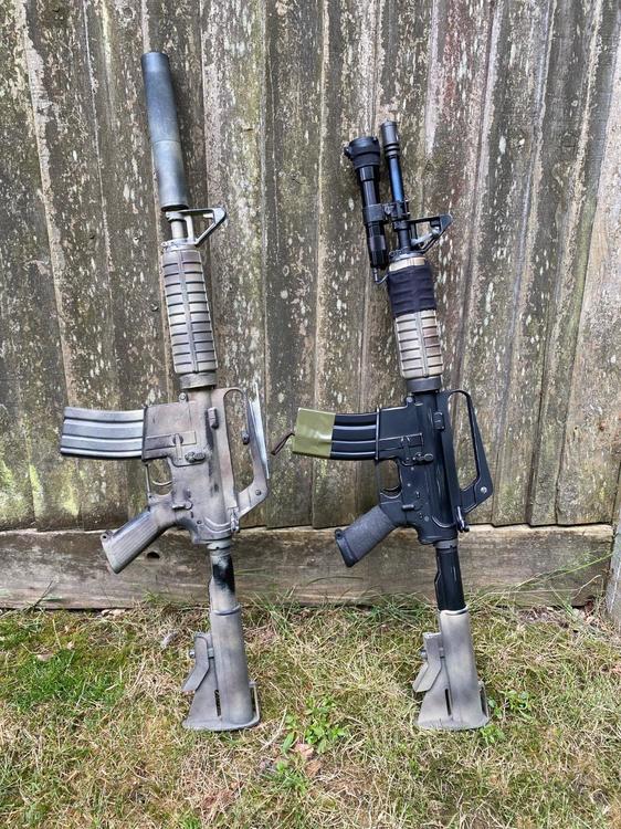So been working on this bad boy. Still not finished. But its getting there... So it's an ares A3 Managed to fit the angry gun mlok rail to it. Added the C Reinforcement sections. Hka3 added to rear. LLM03 3d printed Not seen in pic is the QR codes added to both sa80 and os4. Still to do; Laser engraved the os4 Make a pressure pad and 3d print the coupling. Weather it all.1 point -