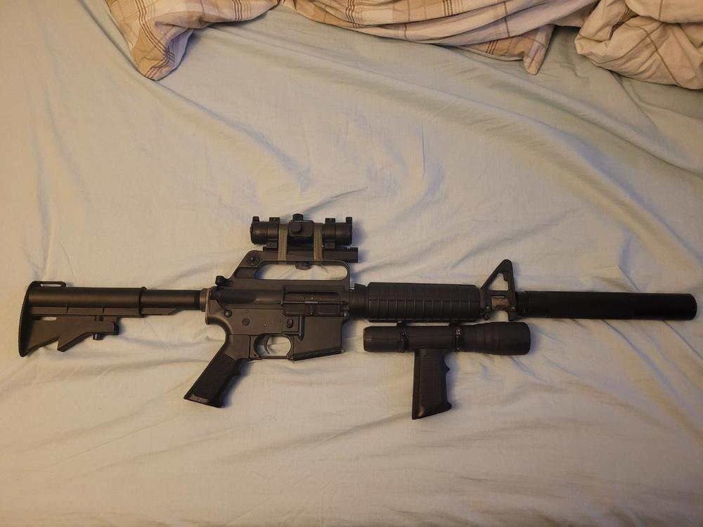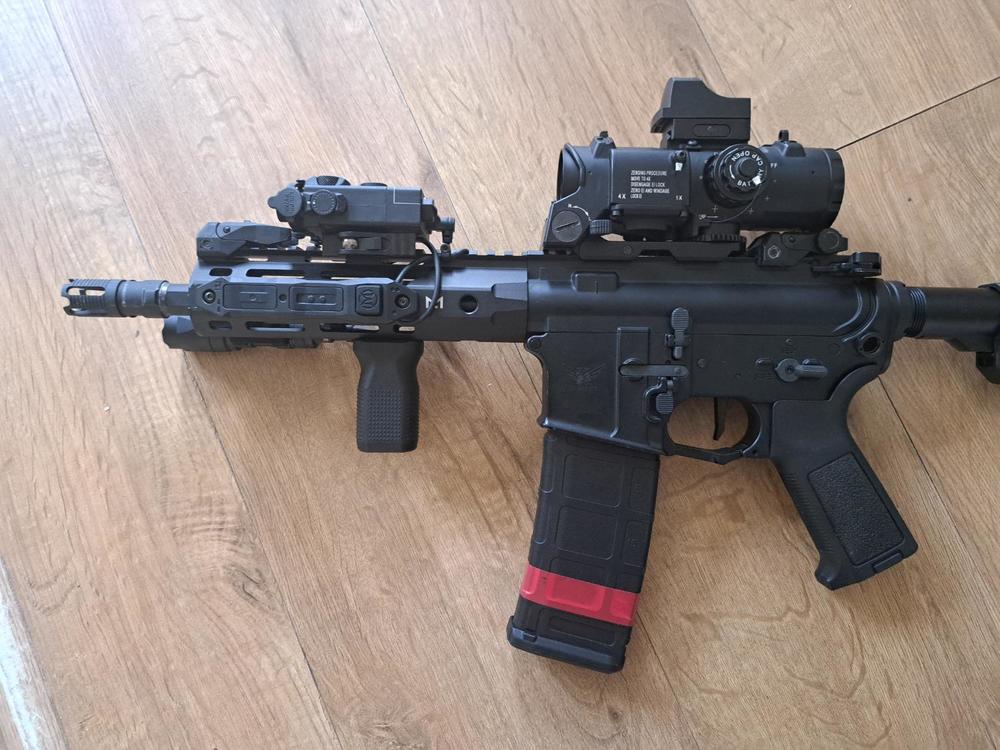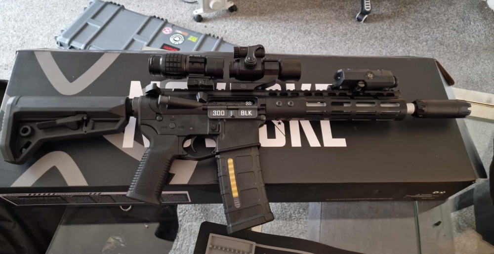 After 10 years of playing, I finally have the cash and the knowledge to buy all the bits and bobs to make a tricked out rifle that has all the attachments that I neeeeeeeeeeeeeed. Being an adult finally has its perks! This comes after a little binge on Aliexpress for the final little pieces. Double Eagle M906C (completely stock and still kicking ass). PTS EPF-M MLOK foregrip. SOTAC Elcan Spectre 1x - 4x Scope WADSN M300A flashlight, on an ARIS Type 2 clone MLOK mount. WADSN DBAL-A2 Laser/light module (Red laser, flashlight, strobe, and IR laser). WADSN 3-button control unit thing with two leads for both the flashlight and the laser module. 3rd button is an ON/OFF switch (not momentary) for the flashlight. Mounts via MLOK Arson Machine MLOK and RIS-based "cable management solutions". Really pleasing stuff tbh. I love retail therapy. Last thing to get is some dinky little tracer unit, as my intention is for this to be my indoor gun now that it can light up a room and I can see where I'm going.3 points
