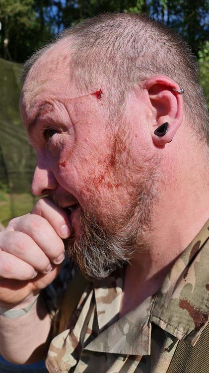 A couple of years ago I decided to put together an airsoft squad, with a group of people I enjoyed playing with. Our goal was never to be the best, or the winners. Our goal was to have a laugh playing toy soldiers in the woods. And we're succeeding at that! It's all about silly fun, and never taking ourselves seriously. Over time our little group has grown from 5 to 17 members, all with the same "Fun first" attitude. We don't often get all of us together at the same time, but today we had a good strong group out on the field, and a lot of fun was had. Missing a few faces, including our Scottish contingent, but it was great to see so many Outcasts playing together again. Unfortunately, with over 100 players on the field, and a shortage of volunteer marshals this week, I had to work. But the Outcasts did me proud. One of our squad did, unfortunately, manage to step in front of a friendly sniper hidden in a bush, at pretty much point blank range. If it wasn't for his goggle strap it could have been really nasty. We call him Iron Skull now. @GAMBLE @Smiling-Dutchman @Honey Badger 63 What the actual fuck?1 point -