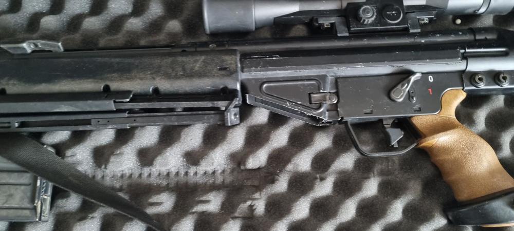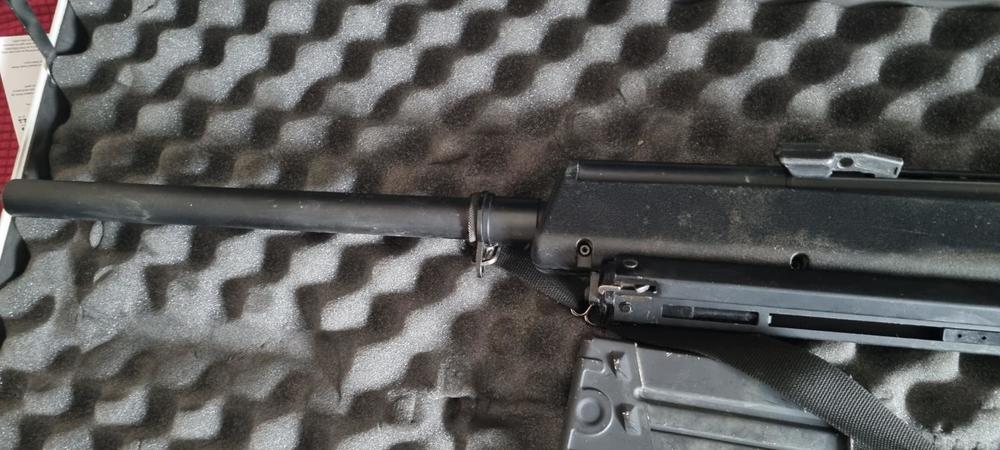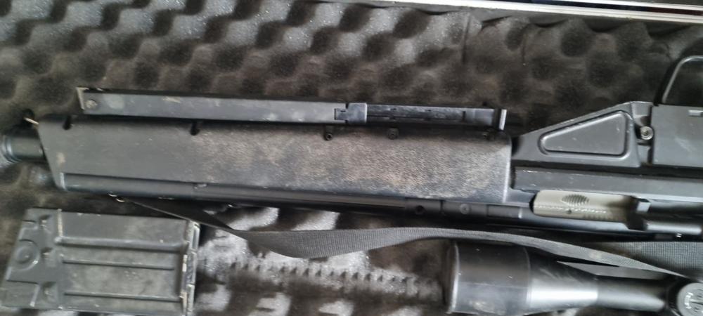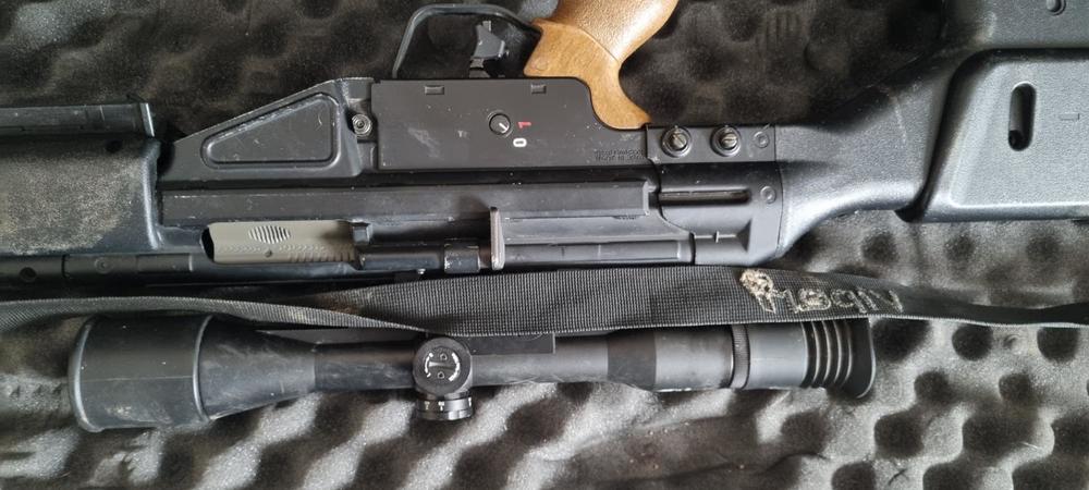 Cheers, yes it has its scope. on picture three you can see damage just behind the handle other then that most of the other is just dirt which will come off with a nice stiff brush! just tried it in the garden shoots nice still and sounds nice too XD when you say name and date what do you mean? first name is Gary1 point -