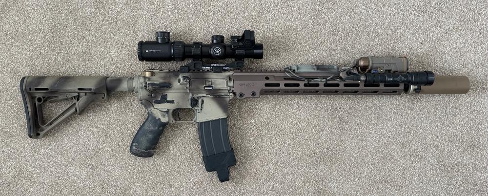 The remaining guns that need testing and tweaking while I'm not allowed to play. Most are simple tests and tweaking, nothing major since I finally got the MWS hopping the ammo I want to put through it last Sunday. It's mostly just setting the hop for the weights I want to use, but a few other minor tweaks needed. From left to right: TM MWS w/ Modelworks mk12 kit - Need to make sure it's shooting straight. Scope I had on it was wonky because of the mounts on Sunday Tanaka m700 w/ real Remington stock - Installed a new hop rubber and nub as it was a bit crap before. Need to set the hop now with the new setup JG BAR-10 - Just need to find what psi to set for 1.1J so I can use it at night games / no MED games; disgustingly quiet since it's internally suppressed and half of that outer barrel is just alternating large/small foam baffles. Already know it shoots phenomenally at 155psi, which gives about 2.3J on .48s, and I can go as low as 80psi, so sure I can get it to 1.1J as well G&P m14 DMR - Ironically not a DMR. Wasn't hopping well, but power, noise and snappiness was all amazing, so installed a new MR hop rubber. Need to set the hop up now. KJW m700 - Usually has a suppressor on it! Finally got around to finishing this one with the threaded shorter outer barrel, as well as the AA hop unit, nub and flamingo rubber. Need to set it up, both power and hop up. I think I have a type... ?1 point