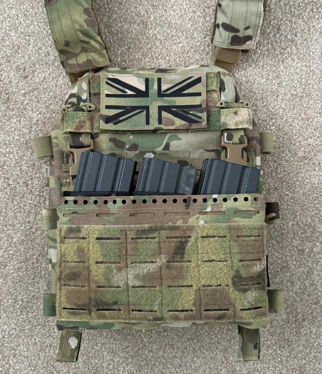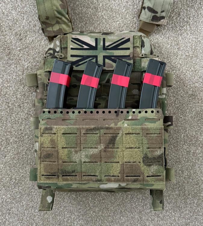 I also run a DCS, and the major downside to the design is it lacks the velcro and clips to mount placards. It's a faff to replace molle pouches during a game day. However, I've managed to get around this using a front velcro panel and some T-bar buckles. Front panel (6 Wide Loop Panel) and buckles from British Tactical (https://www.britishtactical.com/hl-adaptable-modular-system-parts/). You just mount it to the front of the plate carrier in place of your existing pouches I can now mount whatever placard I need easily and quickly. The Spiritus MK5 is my go-to for the MP5, and with the inserts it's quick to swap to 5.56 or 7.62. Added bonus - with a little more outlay, you can run the Spiritus MK5 as a standalone chest rig, which I do when it's really hot (or I'm feeling lazy). It's a really modular system.1 point
