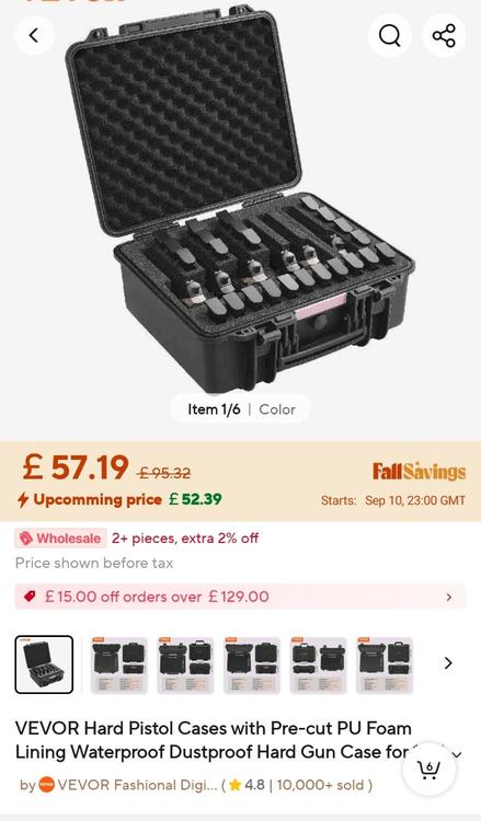 Currently those cases are on offer for £52 which means they’re about £67 after taxes are added. Which is a great price ? just consider, IF they were to sell them at full price for £90 (plus taxes), there’s a British shop that sells pre-cut pistol hard cases for £85. The case shop do MAX cases with pre cut foam for £85 and I think shipping is free (?) at least it was when I bought one2 points -