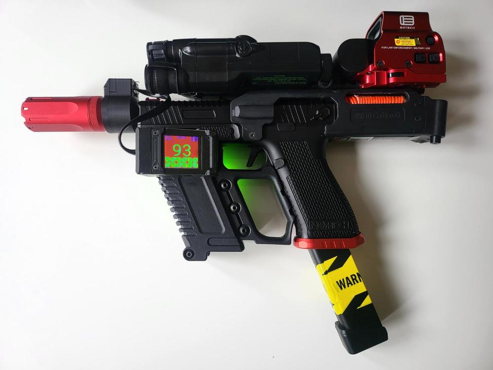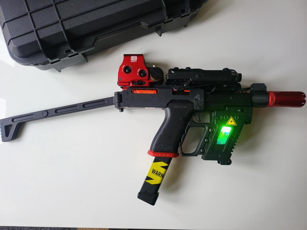 Hot off the back of my ghillie stuff, here's something completely different: The Arasaka JKE-X3 Akaoni Carbine Prototype. It's loosely based on the JKE-X2 Kenshin from Cyberpunk 2077 and was built to compliment my 'Cyber Ninja' loadout I've been using recently. Definitely not to everyone's taste, but it might float a boat or two. It features: Sound-activated electroluminescent wiring, multi-coloured LEDs in the grip, a sound+IR activated round counter, a muzzle flash tracer and few other nice touches. All-in, 6 different power sources ?. Built on the SSE18 platform.1 point -