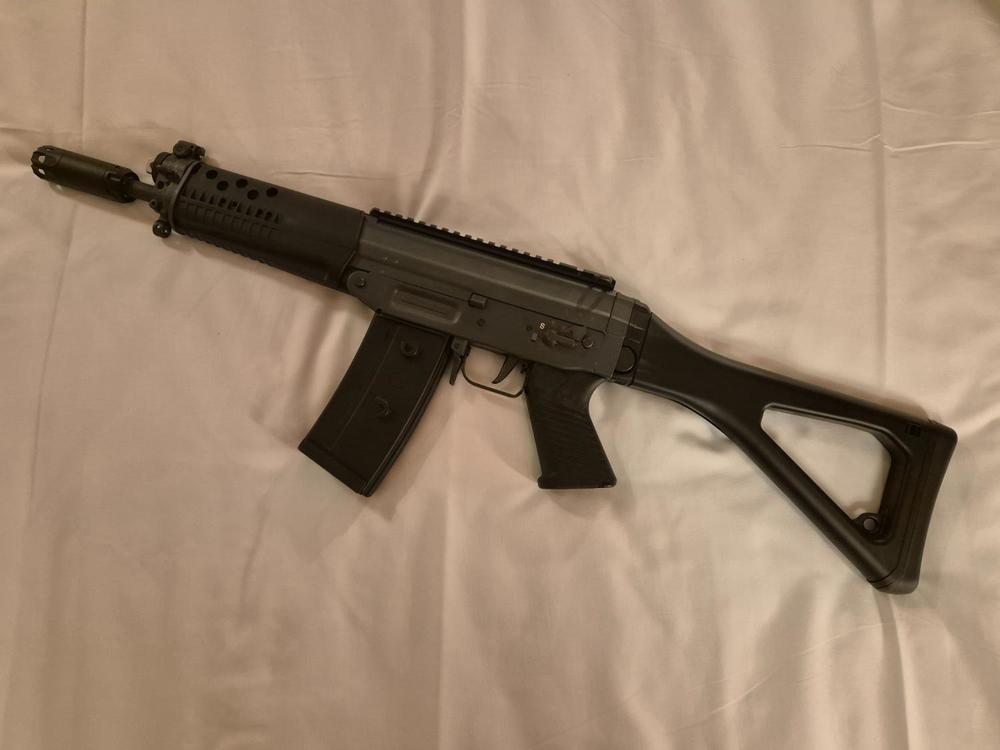 As plain and white bread as they can come, a scruffy boneyard job, but I've spent money on the internals... PDI inner barrel. Snipetor r-hop patch + Modify flat bucking. GATE Titan v3. AK2M4 / XT brushless motor. ... and it runs very nicely on 7.4v (I've no 11.1v's that fit). I'm quite tempted to stick with 7.4v and pop in a lower ratio gear set ? Edit: It was bought with the intention of using as a cold weather / winter sidearm, but as the upper is metal it weighs a ton and is tricky to use single handed.1 point