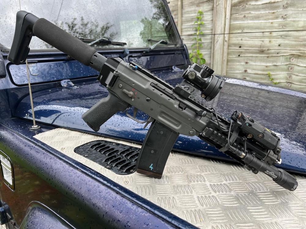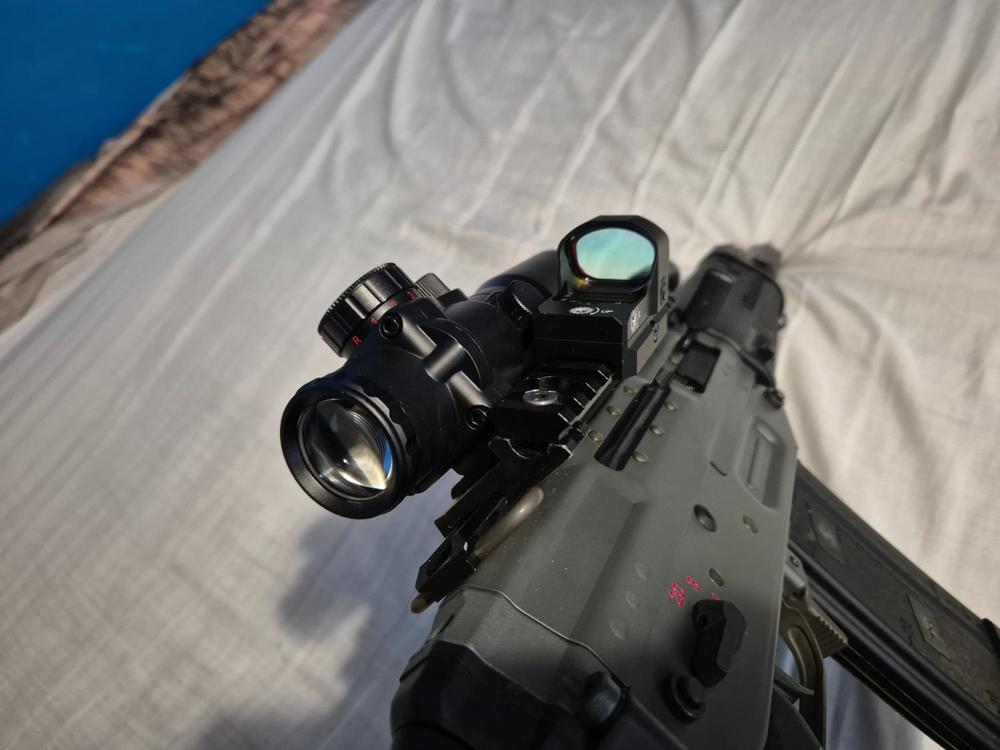 Knock-off Surefire light Vector Optics 4x sight Vector Optics red dot sight Mini red laser Maple Leaf hop-up kit Wo Sport tracer/flash hider (flash maker) This is how it currently looks, just waiting on the laser and new flash hider. Acetech Bifrost R looks good and is great for muzzle flash but is a lousy tracer. The Wo Sport silencer/tracer is great though. Hopefully the new Wo Sport will be the best of both. The laser sight will sit on the front of the top rail. I've removed the front iron sight for it. Used some 45° brackets and a 9-slot rail to make the mount for the red dot. I have another bracket coming, if it's better i'll use it instead. This just clears the charging handle. These Vector Optics sights are really nice, and not too expensive either. The only other thing i've done is cut the joining tabs off the magazines. Got any pics of your 553? Thank you, Galvatron.1 point -