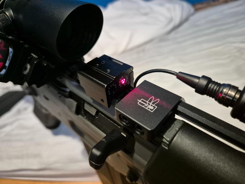 I suppose i'm a purist in the sense that i really like the standard 553 stock and grips. ? I only bought the hop-up on the basis of it being an available upgrade. I have no idea how to fit/adjust it yet. All that matters is that you like it and it works for you. I'm a bit boring in how i like my guns. A laser has arrived: I have two more on the way but this one might stay, it's just the perfect size. Clears the light mounting and below the sight lens. This might be this gun finished on the outside.??1 point -