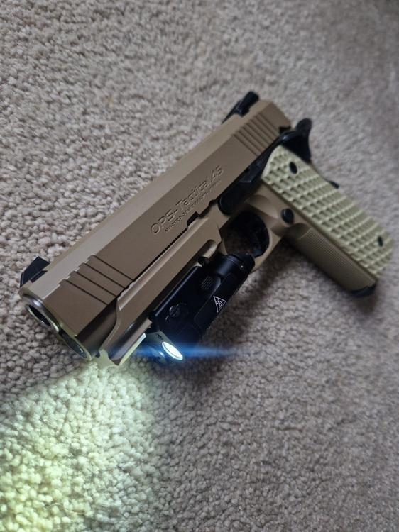 My recent purchases: TM Desert Warrior from the Classifieds x3 TM M45A1 Magazines Xc1 Clone - Aliexpress purchase but is very nice and surprisingly bright for its size. Vorsk VX-9 Grips - The standard grips look a bit shit IMHO and these look quite smart. Should give the pistol a bit of a visual lift and make it more individual. Would like to change the sights....anyone have any recommendations?2 points -