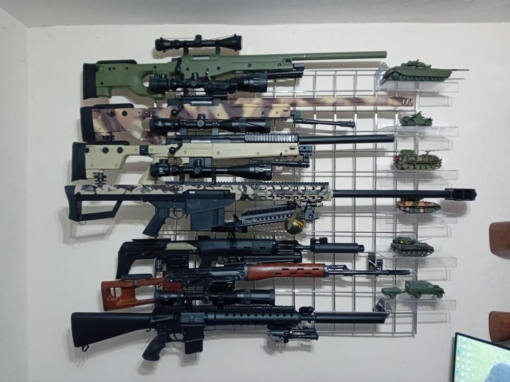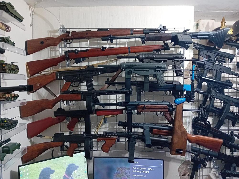 I've been into airsoft for around 30 years, but have only got serious into collecting about 10 years. My job and family commitments haven't allowed me to play really much in the past so collecting was my only option which soon turned into my hobby! When I meet my now wife I explained to her about the sport and that they weren't really gun and she was OK with it as she calls them"toy guns" and let's me get on with it that's was until last month when she had to help me move them to our new home!!!! My new house had a garage which I'm converting into my gun room to home my ever growing collection which my wife now says after seeing it is" getting out of hand" which brings me onto the reason for the post.. how many guns people have in there collection and show us your collection.. Ps I have 150 and can't see me stopping!!1 point