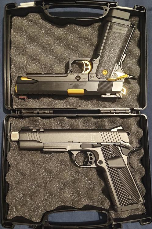 Sold all my pistols except the Mk23 and was going to buy a TM 1911 but heard that with the mags being small, they couldn't hold much gas. I started looking for a CO2 version (I also have a lot of bulbs left over from having a CZ Shadow 2) and was going to get a KJW KP-07 but stumbled on the Secutor Rudis 'Acta Non Verba' in this really nice stonewashed gray. A week later I found a TM Goldmatch for a price I simply couldn't turn down. Both shoot really nice and the TM has nice snappy recoil but I'm just wondering how long the plastic slide is going to last.1 point -