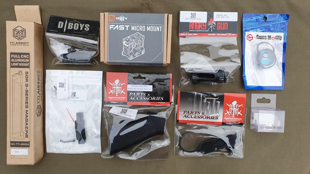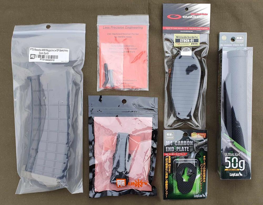 Bits from Fire-Support. Parts from weapons762/ebairsoft aka the artist formerly known as ebaybanned. Stuff from 18airsoft. Things from WGC. Honestly, didn't expect the TTI Glock mag to be gas tight on arrival, but surprisingly it is. Was a lot cheaper than my Guarder lightweight/aluminium extended mags and might even be a tad lighter. Not a realistic mag replica but comes in various colours and functions in my VFC and TM Glocks; pretty good deal. If it holds up long term I'll really be impressed. The carbon fiber bits are the most stupidly extravagant purchases I have ever made for my RIFs, not a smart move but I'm just out here min-maxxing certain things what can I say. If anyone can guess my current build project they win.. absolutely nothing because it should be an easy guess ?2 points -