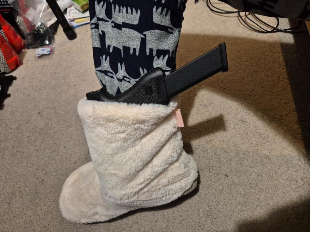 I'm not even going to ask what "tactical crocs" are. And isn't "tucking" a G3 into your socks like "tucking" an aeroplane into your garage? ?1 point -