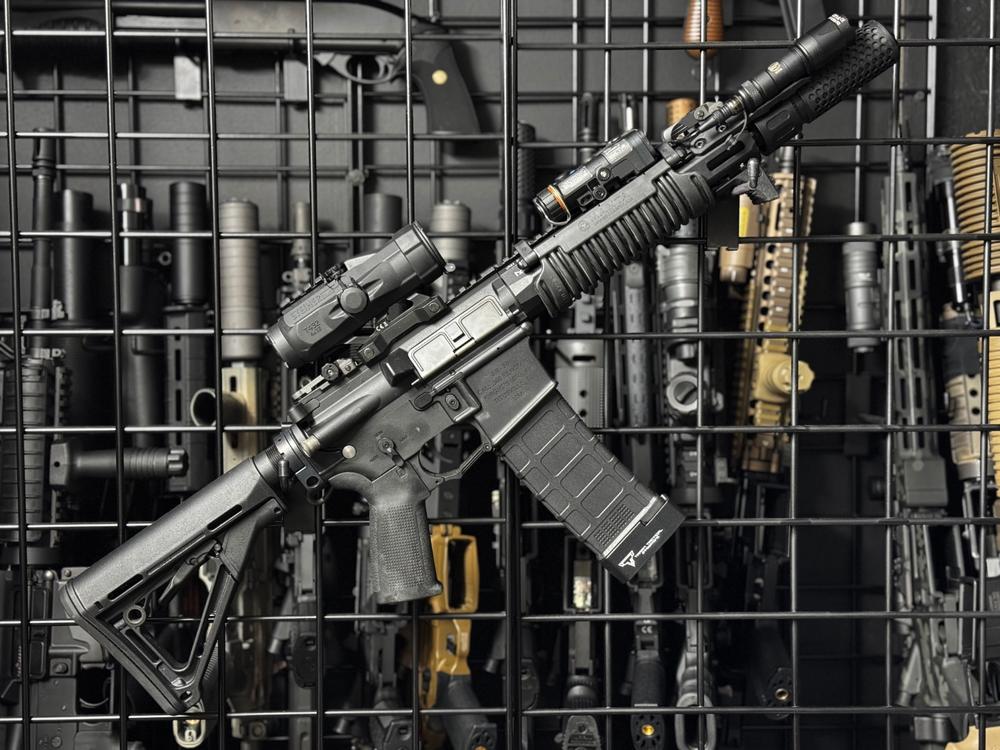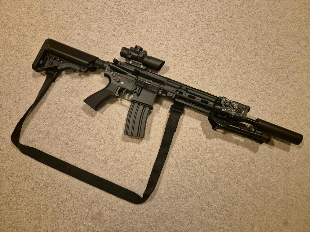 The fairly vanilla AR collection - 1. newly added secondhand TM MWS M4A1 for a Lone Survivor inspired set up (and my first foray into gas), not going full nerd as I don’t have the time or funds, needs a paint job and, if I can find a cheap one, an M203; 2. VFC HK416A5 in a configuration I’m extremely familiar with, other than the TacBelts sling and a lack of magnifier; 3. Specna DD Mk18 AEG for a more modern SOF style look. 1 and 3 for woodland games in God’s plaid/tan or MultiCam, 2 for indoor/CQB wearing black. At some point, there might be a CQBR if I can find and afford a second MWS upper.1 point