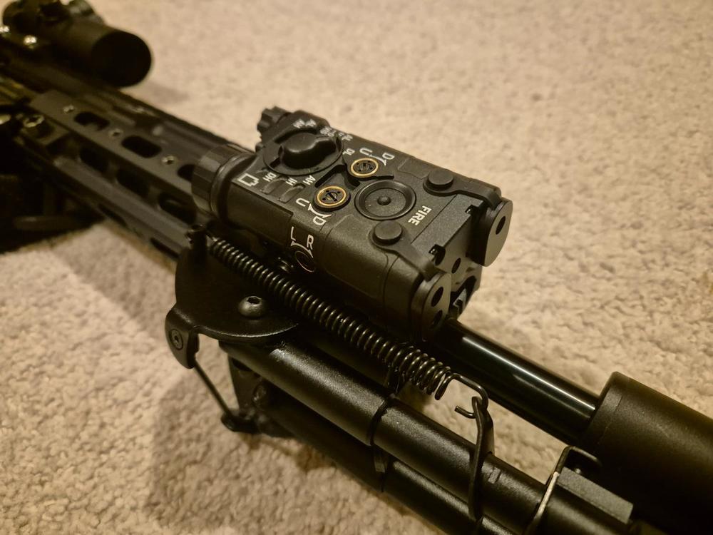 I went into the garage and remembered how much i like to modify everything i own. First thing it needed was a QD sling point on the stock. Then added a Wadsn aluminium NGAL with pressure switch. Modified the switch clamps to fit the Delta rails with original screw locations. Wiring run inside the handguard. and a bipod because i wanted to. Also with its original mounting removed and drilled to fit the Delta rail. Now ready for Sunday's fancy dress game at RIFT.1 point -