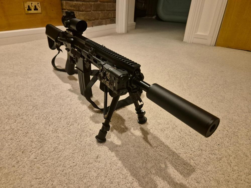 I'd love to use an m14 as a DMR and they're fantastically easy to convert to semi only (literally just disconnect the selector bar, it's a < 5 mins job), but the regular AEG gearbox air volume isn't enough for a 500mm inner barrel and the gearbox itself is fiendishly hard to work on, so if you wanted to use it at sites with different DMR limits it's going to be annoying. I think I'd only use an m14 as a DMR if it was either HPA (like my OD TM version, but I hate the line and tank so it doesn't get much use) or a WE GBBR version, but I don't want to spend £1500 on the setup as I've heard that you basically need to swap everything out internally to get them shooting well and reliably, and then there's the GBBR magazine tax on top of that ?1 point