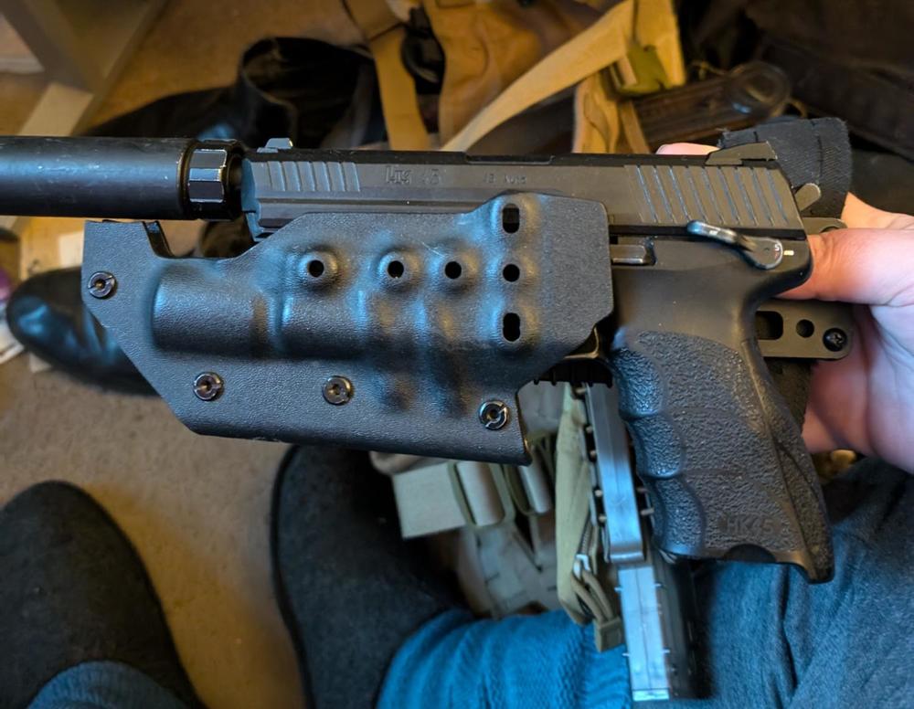 There are holsters that secure the gun buy the surefire torch I currently run one with my knock off Sure fire and a HK45. https://drive.google.com/file/d/1Dqta8b7ftAR_ArsOnS2drLuVXfxLRqJx/view?usp=drivesdk1 point -