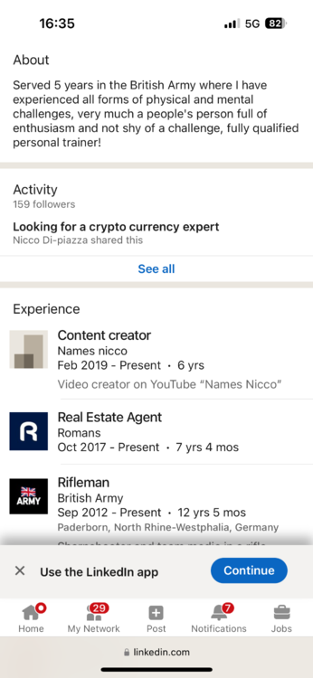 Well he deffo can't count as we have very little in the way of units in Germany anymore. So hes a real estate agent AND in the military? Probably an error not updating LI. But even more reason to dislike the odious little cunt....real estate agent....urggh1 point -