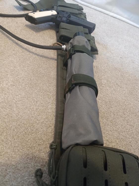 A horizontal pouch to house a little 13CI HPA bottle, keeping it nicely tucked out of the way and not bouncing around on the back of the belt. Primarily for use with my recently converted L96 with a Mancraft SDIK. I couldn't find any ready made solutions on the market, so resorted to making my own with leftover bits and bobs that I had+ a 20 year old sewing machine!1 point -