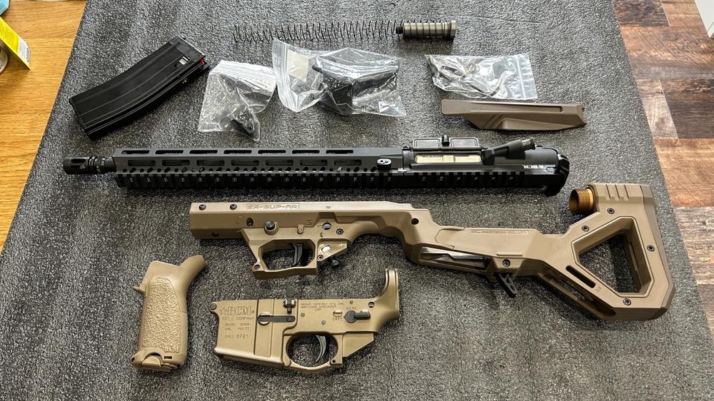 DAS GBLS GDR15 x7 Pts EPM's x3 stanag Mags x2 3d printed speed loader attachments x2 3d printed Odin speed loader Attachments x3 tubs of grease x2 hop adjustment tools x1 nozzle tightening tool x1 inner barrel mount Type B buffer etc. 13.5" upper Steel BCG AngryGun MK16 handguard SF flashider SF style flashlight and lightswitch Radiant style charging handle Mlok foregrip Vortex replica scope and geissele scope mount Type b hop arm ZCI 363mm 6.02 tight bore Maple leaf 80 degree bucking 10.5" upper Aluminium BCG Replica Geissele charging handle Replica unity riser Real steel Vortex Crossfire Red Dot Replica Geissele MK4 Handguard SF style supressor and flash hider Replica SF flashlight & Peq15 (IR laser/light, visible laser/light) Maple Leaf Macaron 60 bucking ZCI 300mm 6.02 tbb Mlok foregrip Lower receiver CageAirsoft C-TECH Aegis Enhanced Electronics V2 Recently serviced PTS EPS Stock PTS EPG Pistol grip Ambi bolt catch lever Replica Geissele trigger guard Laser etched lower receiver with Geissele trademarks1 point -