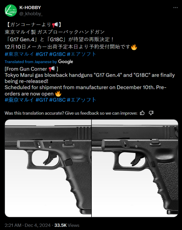 rumour I’ve heard from within the retail industry is that they’ve sorted out the legal problems (which weren’t actually legal problems but production problems) and they’re back at it. we might be waiting a bit for the gen5 as it’s more onerous to produce compared to the others. But who knows. Personally, I’m waiting for guarder to start selling complete lowers, nozzles and blowback units. Then I have everything I need to build them without a donor. First time I took one apart, I got the trigger sear and my screw driver stuck in the chassis. Simultaneously the sear spring launched to the other side of the room and got tangled in my dogs fur…3 points -