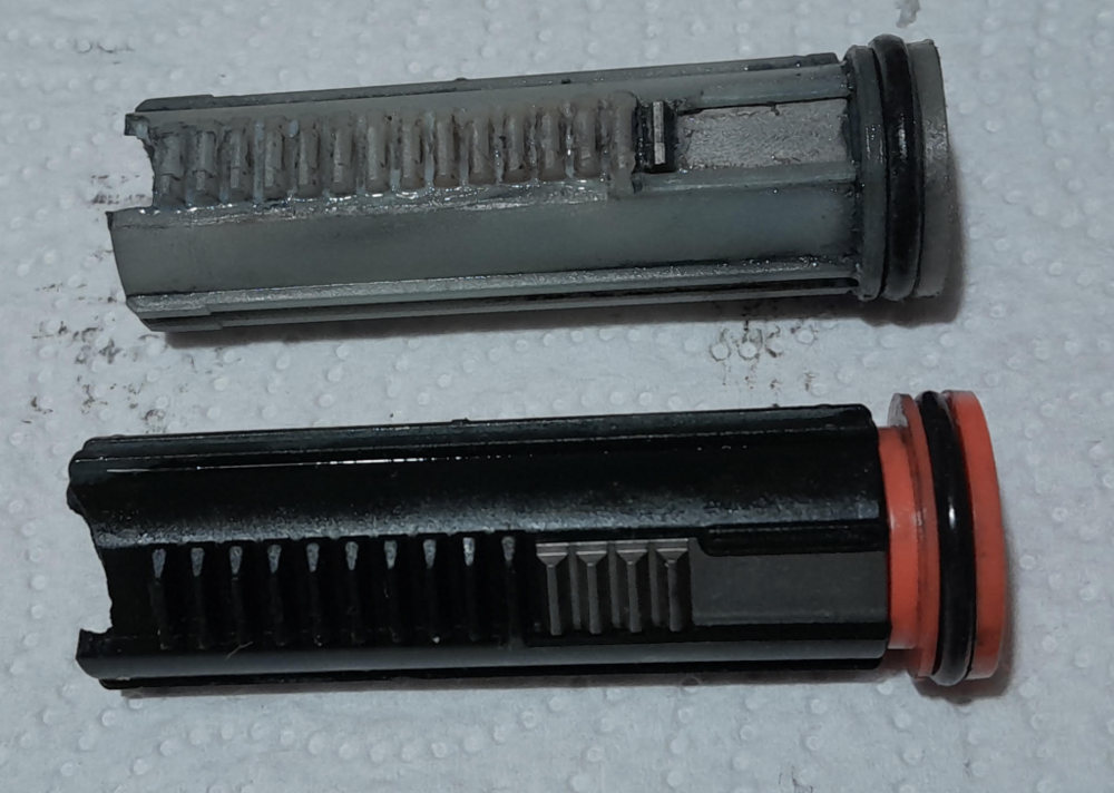 Anecdote, not evidence, but I switched to a bottle of "Rebel" brand 0.28g BBs (BZ Tactical) last game day, and subsequently experienced... this... To snap one piston, Mister Borg, may be regarded as misfortune. To snap two looks like shenanigans. On disassembly, one barrel definitely had a BB stuck in the hop and both of them had 2 BBs roll out. Of course this could just be an AOE problem, and those are well used cheap JG / CSI plastic pistons being smashed by Big Dragon M140s on 11.1V, and it might very well be entirely unrelated to the BBs, but I'll be binning the Rebels and switching to something else out of an abundance of caution. Aside, this is why I prefer plastic pistons, because they're the cheapest part to replace, and everything else is intact in both boxes. Sadly, it looks like all aftermarket pistons are steel racked now, so I'll be reluctantly "upgrading".0 points -