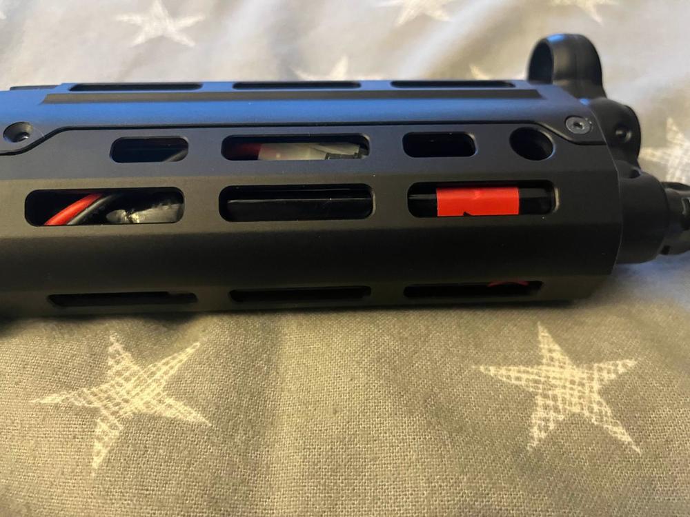Rail fits via the 4 clamp points by the ejection port/magwell. Battery space is admittedly pretty tight but it fits (barely lol). If you plan on getting stuff for the handguard I'd recommend either cutting the screws down or buying shorter ones. I used 8mm M4 screws to stop any puncture issues. it's the 5KU Monolithic Rail. Installation is identical to this: EDIT: Sorry forgot to show battery space with all the shit attached:1 point
