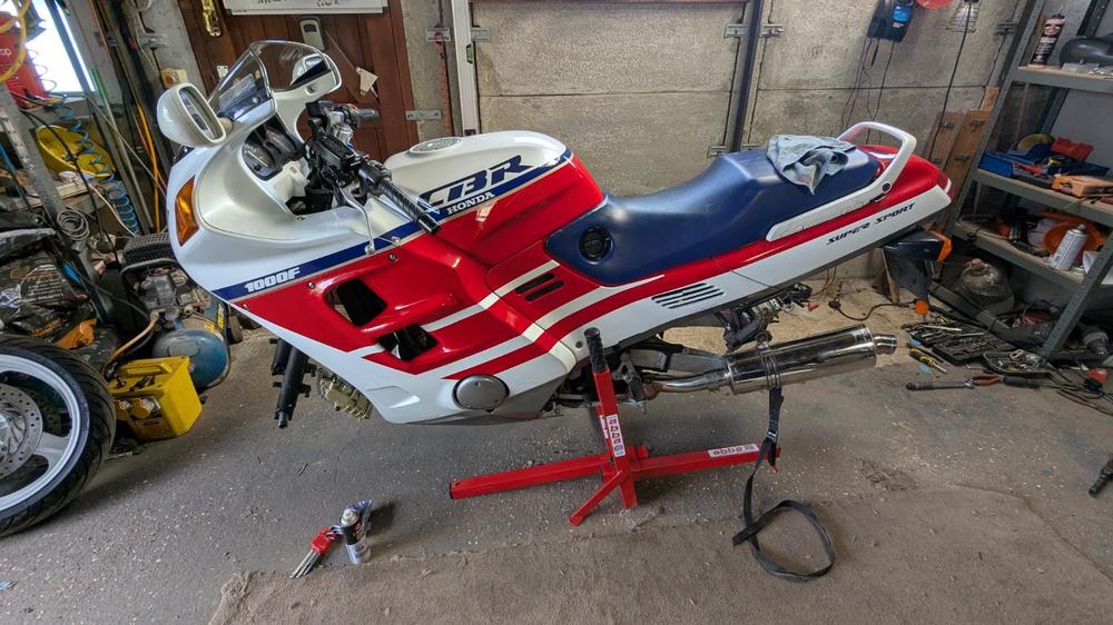 testing the abba stand to the max!!! New rubber fitted by the nice man in the van that comes round and takes away the 15 year old rubber from your wheels! All Mot'd and back on the road. now to sort out the other miriad of things wrong with it.2 points