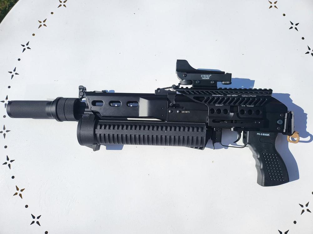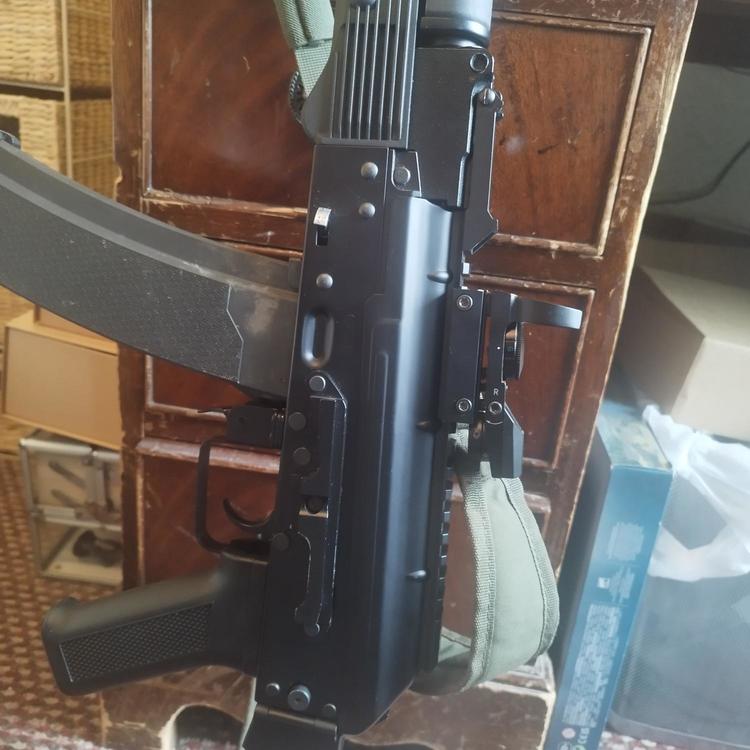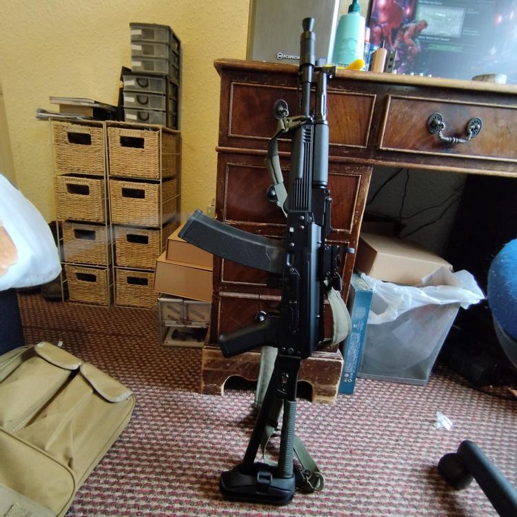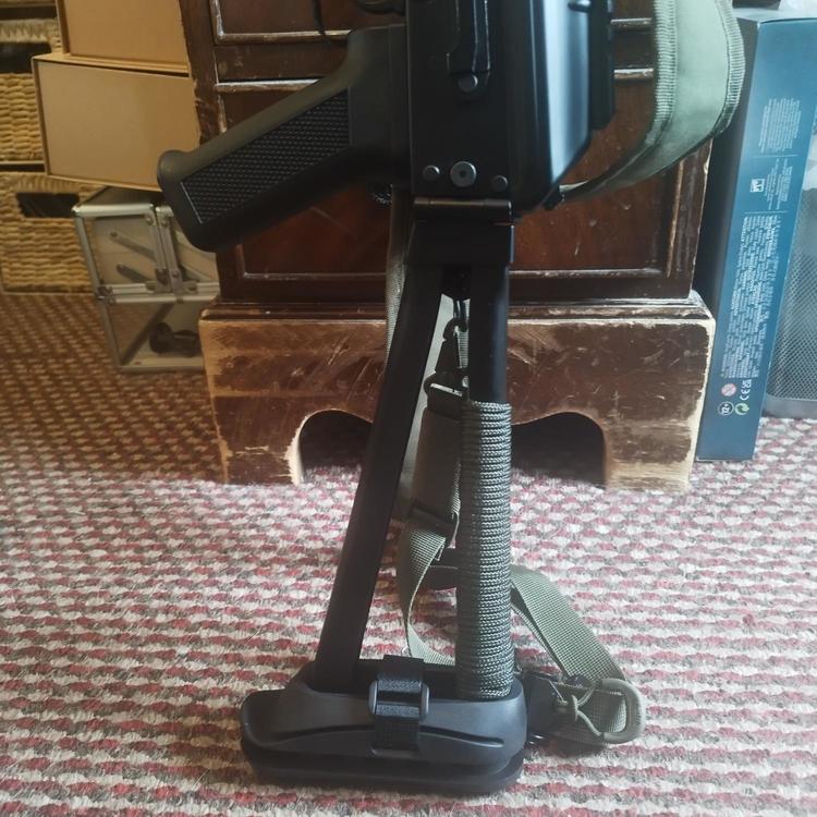 The RIF I wanted so bad, that when I joined these forums 20+ years ago, my username was 'Bison Hunter' ?. I got a custom made from a TM Beta Spetsnaz but it wasn't really skirmishable. Then I quit the hoppy and came back 15 years later to find that Bizons had basically been and gone... until Patrol Base got some stock in at the same time I got a work bonus. I've had it 3 weeks and decided I wanted to remove the stock completely and cover the exposure at the back. This required an adaptor that itself required some angle grinder attention. But now with the RK-3 grip, B-13 mount (both with funky Russian language on them), and PBS-1 can, it's almost my dream RIF. In lieu of a decent Kobra sight, I have a C More sight on the way, so the nasty one on here is a placeholder. First game on Sunday and I just can't wait! ?1 point -