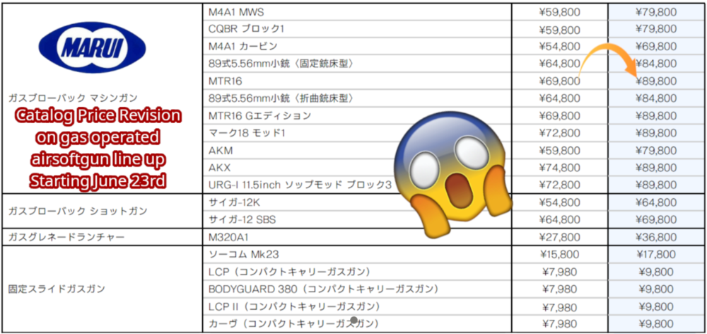 TM are only really expensive because they are all grey imports. They are cheapish in Japan. Also other stuff is creeping up you are paying £300 and up for high end Chinese and Taiwanese gun. even guns that were a £100ish pre COVID are now pushing £200.1 point