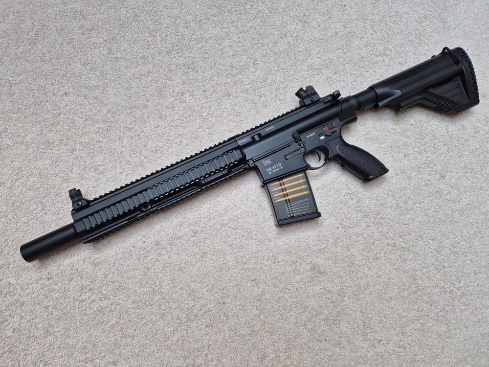 I use a variety of DMRs - AEG, and gas. I have the SSX303 - out the box I quickly found it totally uplayable due to wild inconsistency and rapid drop off in power with cool-down of the mags. Now I have an Airtac shotgun shell HPA adapter in it+ a tridos hop arm to tighten up the accuracy, and it is really superb. Almost silent with a silencer on it too. But - I have just as much fun with an AEG DMR. With the Cyma SR25 it is extremely easy to mechanically semi lock it by adding a large washer between the gearbox and the receiver, held in place by sliding the rear body pin through it. it works by restricting the movement of the selector plate, and is 100% reversible too. Its a long heavy beast though....1 point -