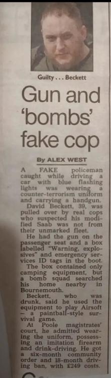 Yeah, but if we think about it, impersonating a police officer and carrying an imitation firearm around in the open is nowhere near as bad as calling someone a stinky poopyhead on the internet. Ooooooh, there's some nice flashing blue lights outside my window. I wonder wha-...2 points