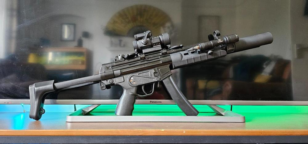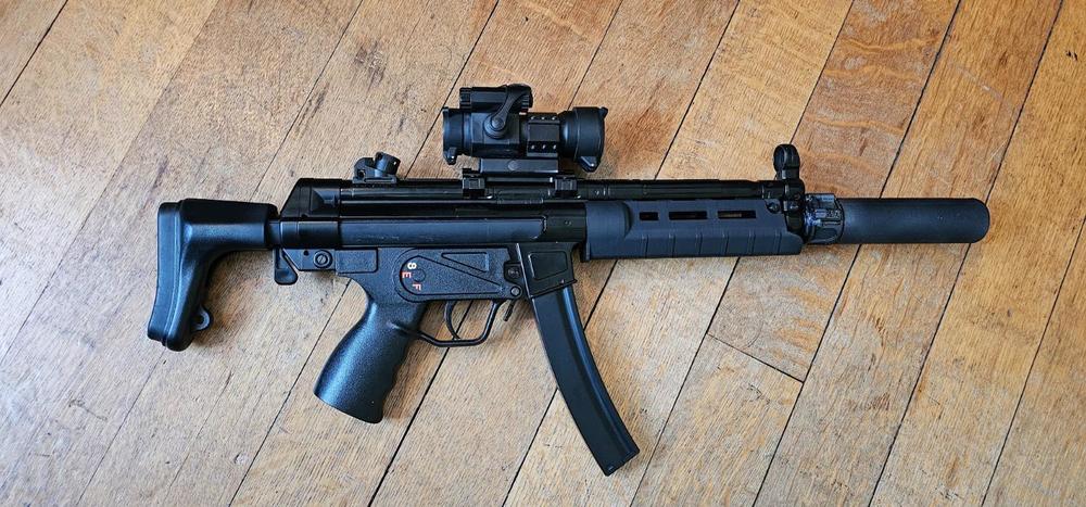 Man I thought I had a problem with MP5 addictions, some of y'all are shoiwing me up! MP5s are undeniably the coolest looking gun ever made and anyone who says otherwise is just lying to themselves in a mixture of jealousy and denial. And the only thing an MP5 needs to look gucci as all fuck is the surefire flashlight handguard. Or the SD front end. Less is more!1 point