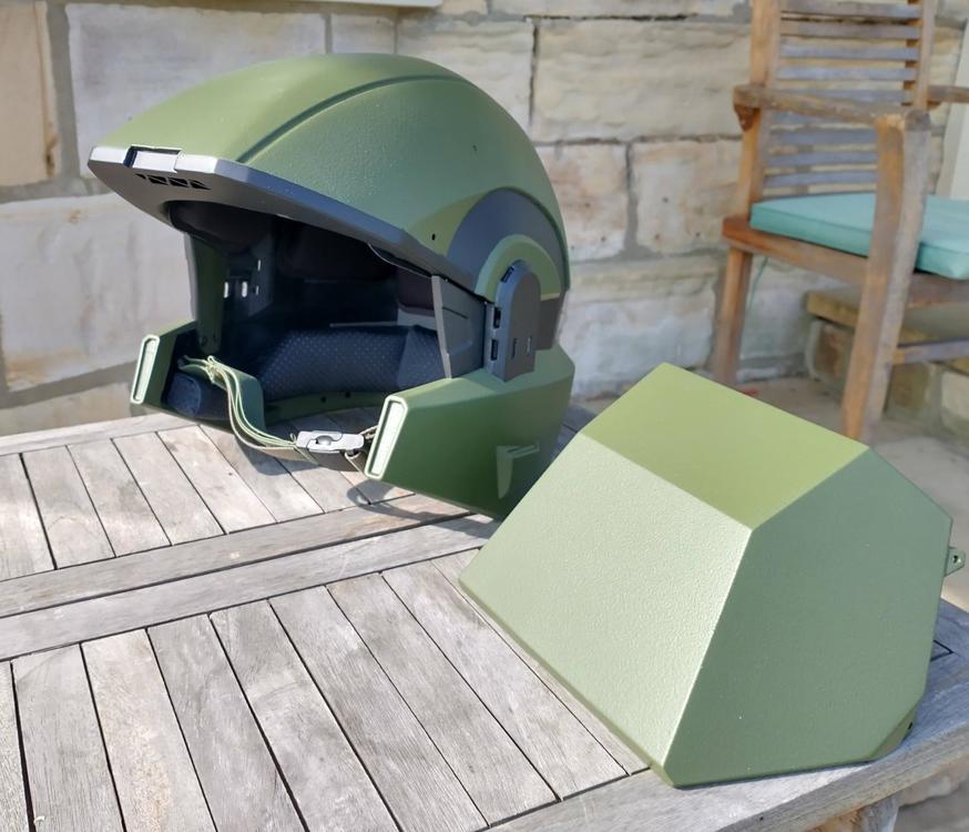 Hello again, It's been a slow few months. The moths inhabit the empty wallet, and the paint is slow to dry in the cold of late winter / early spring. I have since acquired the HPA engine (Scalar Seraph, though I've yet to acquire the tank and regulator. I've started working on the HPA adaptation of the M7 SMG, and will be looking to do do some preliminary thinking and design work for the MA5B (Assault Rifle). Cute lil thing. I reprinted the entire helmet as the prior one was too small for me. I also printed it as one piece instead of 2, out of PLA-ST instead of ABS. I got a significantly cleaner and stronger print. While experimenting with the electronics, it turned out that DC fans usually don't like PWM unless they're designed for it. This means that unfortunately I had to ditch the controllable fan speed for a simple on / off switch. Preliminary sanding done using orbital sander, proxxon pen sander for details, and hand sanding. My fingers and tendons thanked me for buying the pen sander. Layer of Motip spray putty that needs to be sanded right back to the base material. Leaving too much on makes the paint easy to chip / flake off. Unfortunately I spent a lot of time sanding the helmet smooth, painting it with a rather heavy top coat of Maston olive green, before figuring out an alternative finish that I'd rather use. It sealed the deal when I foolishly thought the paint was fully set and I turned it over to paint the bottom. Somehow I hadn't thought of making a helmet stand, and the paint on the top marked from the bubble wrap I'd set it on. I sanded it back a bit before applying the textured finish. The technique I discovered was simply painting over a textured spray paint, which provides a nice textured finish that's extra matt and scratch resistant. Unfortunately this meant I wasted rather a lot of somewhat expensive paint. Comparison between the same paint, both smooth and textured. Rustoleum textured paint. Created a helmet stand for painting without the paint ever touching anything. Overcoated with Maston olive green. Unfortunately the black also didn't fully set, and the masking tape marked it lightly. The lacquer evened it out well enough thankfully. I've never had this many issues with paints not setting even after days, even in the cold months. I had the same paint mark from sitting on fabric weeks after painting. I ended up using a food dehydrator inside a large cardboard box, set to 50'C for 12 hours to "bake" the paint. It seems to work well. Voila. I think it came out rather well. The chin strap was a bit of an experiment, to see whether a fully elastic strap would work. It didn't, it's *too* elastic. You want a little bit of flex to allow your jaw to wag, but too much and it allows the helmet to shift and pull right off your head if you fall. So as you can see there are multiple layers of elastic with some inelastic strap to remove the elasticity rather than ripping all the stitches. I'll certainly change it at some point. I've used a magnetic buckle as I did with my previous helmet that makes it easy to secure with gloves on. Due to the buckle, you can't get a cheek weld on the side it's on. It can be reversed easily, but not something you'll be doing mid game. Getting a cheek weld in general is awkward, but it's the price you pay to use a "sci fi" helmet. It is possible, and better than my prior helmet in most ways. I've also added TPU (rubber) pads to the inside and bottom of the mandibles to stop any scraping against guns to protect the finish of both and reduce noise. The padding is a rather crucial part of this helmet. Not only is it about comfort, but it's about safety too. I see a lot of dodgy custom helmets, and I wanted this one to not be a death trap while running around playing in the woods. I've bought a set of quality D30 pads from a body armour shop, which are amazing at absorbing impacts. Some may know D30 from motorbike armour / padding. These form the primary padding around the skull, while my own DIY padding protects the neck from rotation of the helmet. It consists of 20-30mm of hard / dense EVA foam, with a soft open cell fronting and sewn mesh covering. The fan and battery is integrated in such a way that it doesn't protrude or create any pressure points. The fan is a little louder than desired, but it does actually work to clear / prevent fog if you tilt your glasses slightly so there's a gap at the top for the air to pass into. I imagine it works well for goggles as the top vents would be closer to the duct outlet. The side panels can also be replaced with low profile ones that should allow wide goggles to fit. Key thing for me is it's low fuss, no tubes to mess with, and it's there when I need it. It's a little noisy for running all day, but there's enough capacity in the 18650 battery to do so. Something I may look into eventually is fitting a full face shield, a little like the NMPD police helmets in ODST. The Bolle sphere would be the main candidate as it has a 16J impact rating. One more project I'll be working on is a backpack for my kit and the HPA rig. I wanted to do the hardcase trooper backpack from Halo Reach. This'll be a tall print, using up 359mm of the XL's 360mm build height. I want to add some MOLLE modularity to it. I'll be sewing the straps and padding system, and likely padding out the inside so it's not a rattle can. On another post I'll detail the DIY chestrig I made once I have the chestplate and pouldrons finished up. Thank you for reading, more updates to follow1 point -
