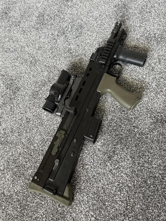 Was updating some of my sales posts when I saw this pop up for collection only in my town. The guy was 10 minutes away. It's the G&G ETU version as well which is a nice surprise and rotary hop already installed. Rifle has an issue where every 3/4 shots it sounds like it's grinding the gears. I can see a some black plastic bits on the outside of the gearbox which could be the all plastic piston being shredded up which is what happened on my standard L85A2. The seller suspects it's actually the motor that's giving up. When I get some time, i'll pull it apart but for now, very happy.1 point