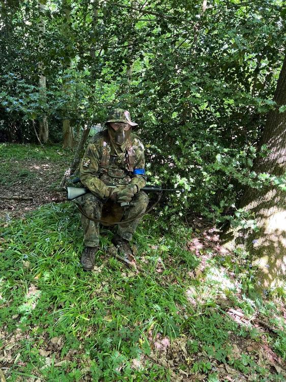 Today's plastic slinging adventures took place at my most favoured haunt, Airsoft Plantation, in deepest and sunniest Essex. The safe zone was busy, but not over crowded, with probably about 160 people present. I was also using the day to try 0.30g BBs having found some in the cupboard. The first game involved us, as the attackers, starting at the DEA Base, with our first objective being to obtain an ammo box, containing four smoke grenades and information on where they were to be set off in the village, from the hill fort on the edge of the mortar pits. We had infinite regens on a buddy after a 30m fallback, while the defenders had one life in the mortar pits and two in the village. Our assault on the mortar pits went well and the ammo box was soon obtained from the hill fort; having wiped out everyone in the mortar pits, we set off to blow up the four targets in the village. At least, that was the intention; the reality was that those of our team escorting the bomber somewhat lost track of their mission as they were rather enjoying the firefights. The group that I was with swung around the village to attack it from the rear, which went well, and we soon pushed into it, taking a series of buildings from that side. Eventually, our bomber remembered his mission and disposed of the targets, albeit with something of a lack of urgency. After a short break to reload and take on fluids, we set out to reverse the game. Initially, I took up a position near the hill fort and picked off a fair few attackers before I got a nice little dink to the head, which left me with a headache for about an hour. Falling back into the village outskirts, where we held up the enemy attack for a while, I was hit again and fell further back to the rear of the village, where I concealed myself in a bush. This paid off as I spotted the bomber and his escort sneaking through the woods at the back of the village and took them all out; 0.30g BBs do cut through foliage rather well. Changing position, I engaged other attackers trying to sneak around the back, but was eventually hit again and went back to the safe zone. The next game involved ten of the players on our team, including me, being held hostage in the mortar pits. The hostage takers had one life each, while our potential liberators had infinite buddy regens after a 30m fallback. Our comrades had to rescue us without killing us; our captors were not allowed to kill us. Six of us were held captive in the bunker, where we enjoyed the banter with our captors and even more enjoyed seeing them get killed. Eventually, our rescuers arrived and we were escorted back to the plane at the DEA base; all ten hostages were rescued, which was excellent! Lucheon followed, during which a number of players left as they were struggling with the heat. Once everyone had dined and taken on more fluids, we set out for the woods for a fallback game. As the defenders, we had one life in the woods, one in the village and the final one in the mortar pits. The attackers had infinite buddy regens and had to set off bombs on the border bridge, in the well in the village and in the bunker in the mortar pits. Before this game started, there was a quick head count of both sides; the site owner failed to count me as he initially did not notice me sitting against a bush, despite only being about 6m away. When he did eventually notice me, he took a photo. Flecktarn, combined with an ability to remain very still, is very good in woods. I wandered over to our far left, where I potted several attackers before deciding that the best thing to do was to remain hidden and then sneak up behind the enemy once they had passed my position. This was very enjoyable as I took out several attackers before eventually being hit; while I was chatting to the guys who got me, they were all hit by another of our players who had done the same as I. Passing through their lines, I took up a position at the edge of the village, where we put up a good fight. I was eventually hit and fell back to the mortar pits, where I was again hit, sending me back to the safe zone again. A lot of players left after this game as they were really feeling the heat, so the reverse of it was played with far fewer numbers. We cleared the woods and blew up the border bridge rather quickly, but got bogged down taking the village and the mortar pits, with the game timing out before we could blow up the bunker. It was a very good, although very hot, day of airsoft, which was played in a good spirit, although there was a bit of whinging after lunch, which seems normal at every site I have played at. As usual, I had planned to use two rifles, one in the morning and one in the afternoon. However, the afternoon one was not happy with the battery I had brought for it and was over spinning, so I had to use just the one rifle. I was delighted to find that a 1600mAh LiFe battery can last all day. I will probably continue to use 0.30g BBs. Weapons used: Ares L1A1 ASG XP18 Commander (CO2) Weapon not used: Real Sword QBZ-972 points -