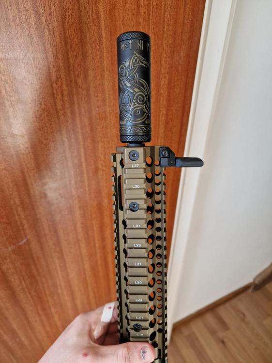 3d Printed some suppressors, out of resin because I dont have a FDM printer yet but its just a bit of something. tried to colour match the chaos bronze of the handrail Trying to find an angled buffer tube/stock adapter for the specna arms prime with the ESA2 quick change spring, so if anyone knows of any STLs3 points -