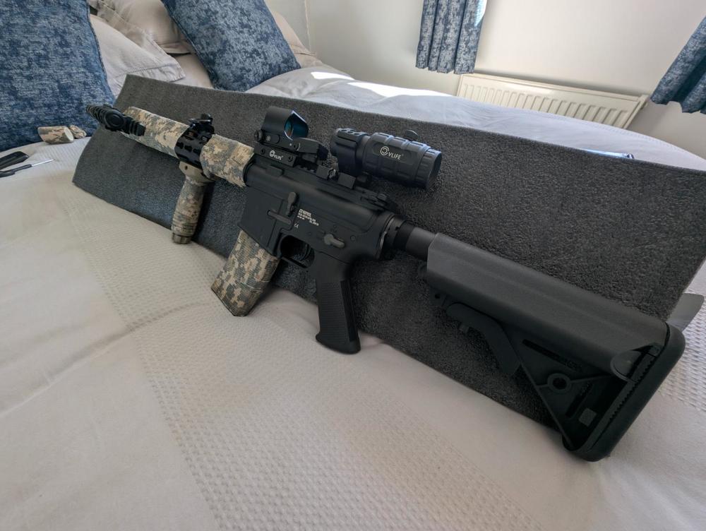IMG_6319.mov Had to show my fist attempt at creating the faux wood look for my Cyma Shotgun! Quietly proud of the finished result! now what else can I find ?1 point -