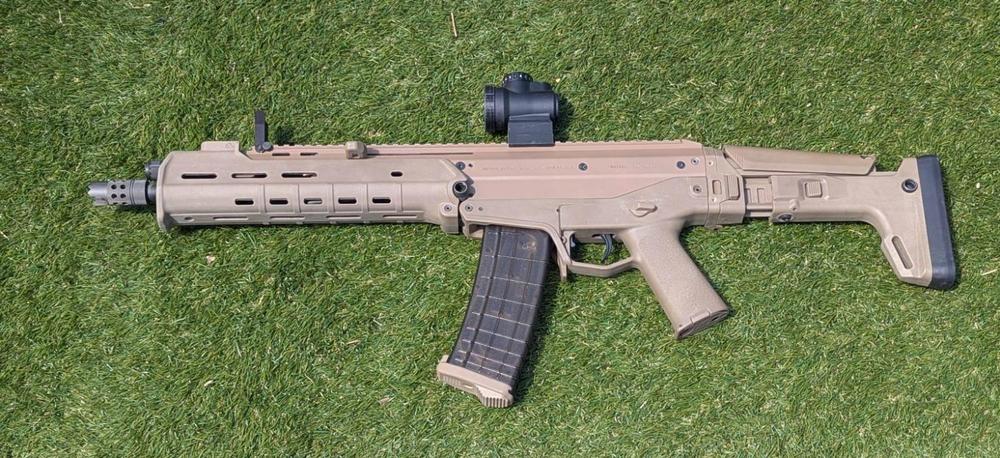 fun project. Picked up a worn PTS Masada AKM from Strykerles with a few known issues. Originally it looked like this: I stripped it completely down, removed all the old paint and replaced the micro switch in the gearbox which was goosed. Cerakoted the upper receiver with Magpul flat dark earth, put in a new front sight and replaced a few other bits. Turned out pretty good.1 point -