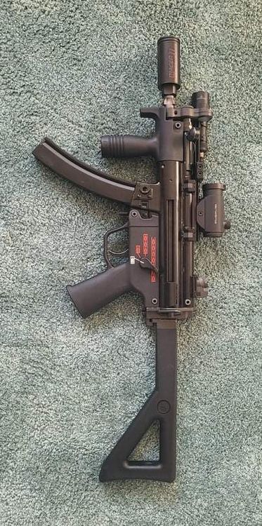 So been working on this bad boy. Still not finished. But its getting there... So it's an ares A3 Managed to fit the angry gun mlok rail to it. Added the C Reinforcement sections. Hka3 added to rear. LLM03 3d printed Not seen in pic is the QR codes added to both sa80 and os4. Still to do; Laser engraved the os4 Make a pressure pad and 3d print the coupling. Weather it all.15 points -